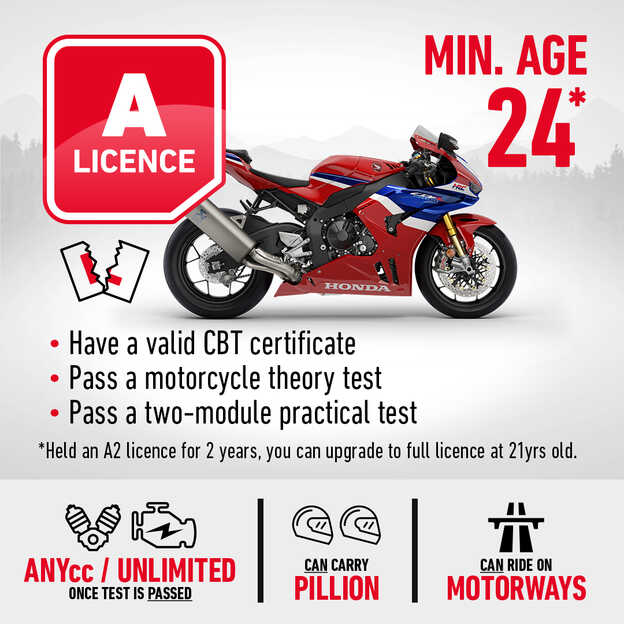 Register online today and we’ll make getting your hands on a new, more powerful, bike even easier. Book a course at one of our Approved Training Centres and you'll learn everything you need to start riding a bigger bike in no time. Under the guidance of expert instructors, you'll work your way up to an A2 or A licence. If you register before 05 January 2026, not only will you get a nationally recognised licence, but we’ll give you up to £900 towards a new bike.