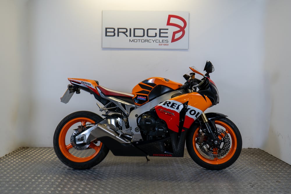 U13536 - This 2010 Honda CBR1000RR Fireblade in iconic Repsol livery has 19,051 miles on the clock and delivers the sharp performance and striking presence the model is known for. It comes equipped with a tail tidy, tank pad, and an aftermarket screen, giving it a cleaner look and added rider comfort. A standout superbike that blends race-inspired style with proven Honda reliability.