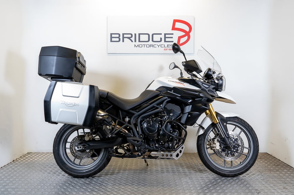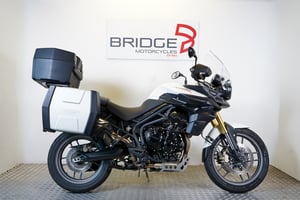 U13492 - A 2014 Triumph Tiger 800 in stunning white, showing 20,312 miles and having had 4 previous owners. This well-maintained adventure bike comes equipped with a Datatag security system, engine bars, heated grips, hand guards, and a headlight cover—perfect for both touring and daily riding. Known for its smooth, reliable triple engine and comfortable ergonomics, this Tiger is ready for its next adventure. Priced at just 4,899, it’s an excellent value for a capable and well-accessorized machine.